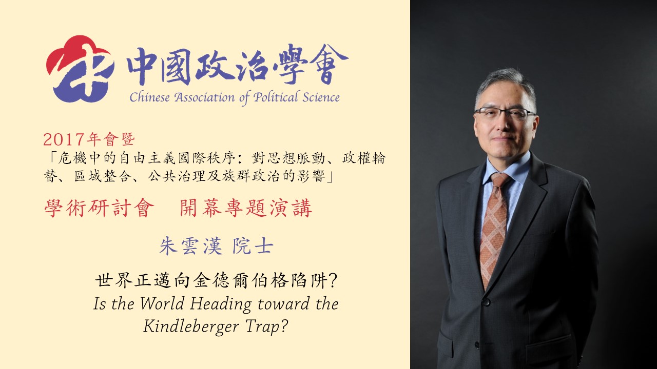 本年度2017年特別邀請中央研究院政治學研究所特聘研究員、中央研究院院士暨本中心計畫主持人──朱雲漢教授擔任演講貴賓,演講題目為「世界正邁向金德爾伯格陷阱?」(Is the World Heading toward the Kindleberger Trap?)。