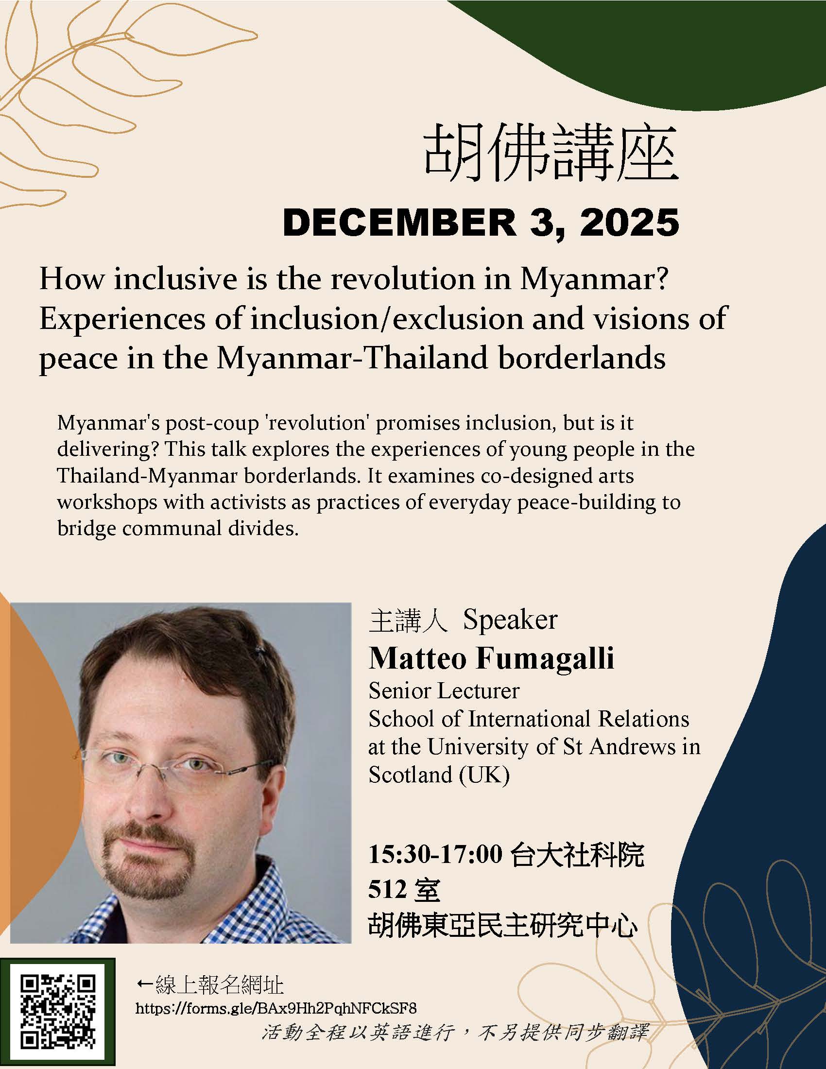 ▼Venue:Conference Room 512, Hu Fu Center for East Asia Democratic Studies, College of Social Sciences, National Taiwan University